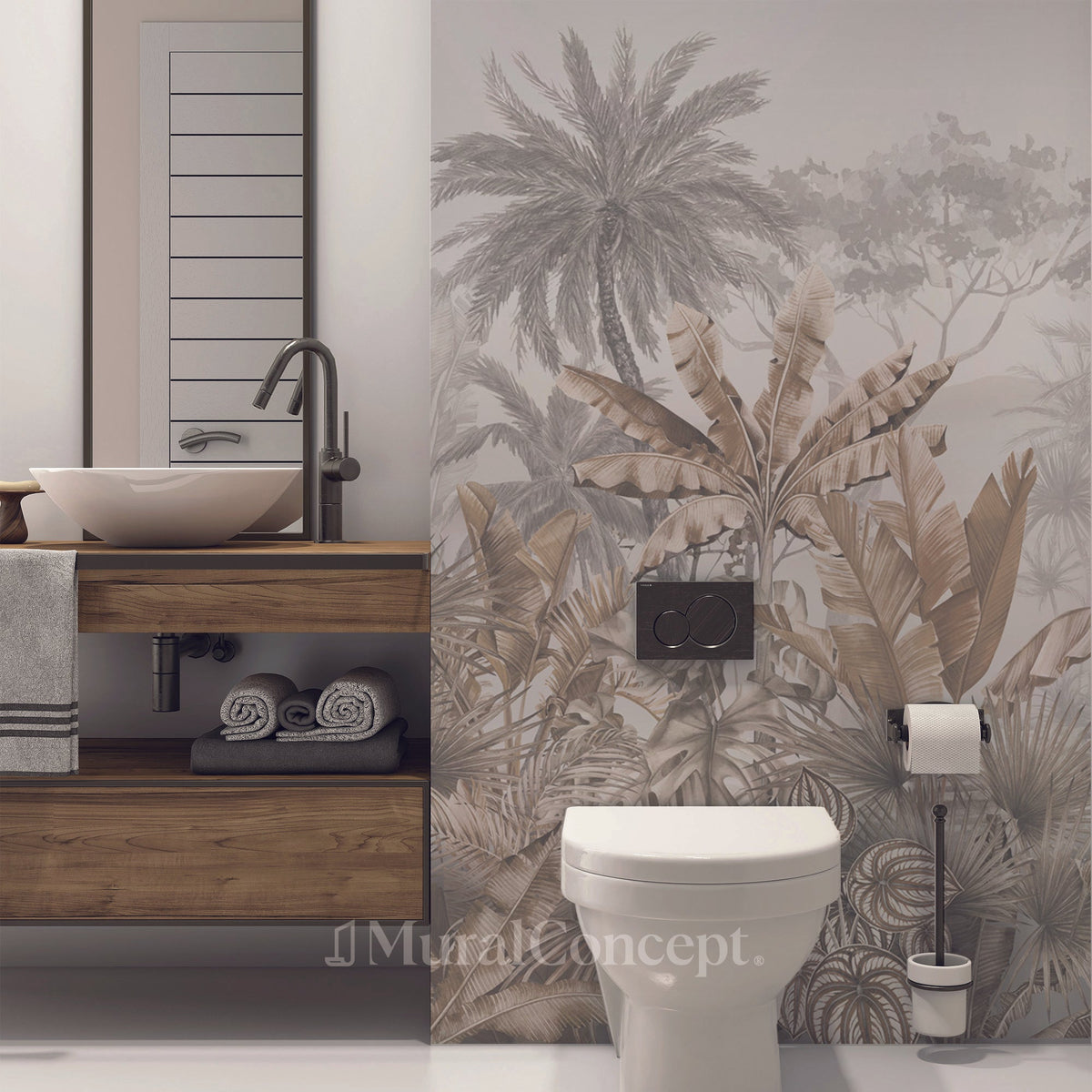 Papier peint wc tendance tropical sépia